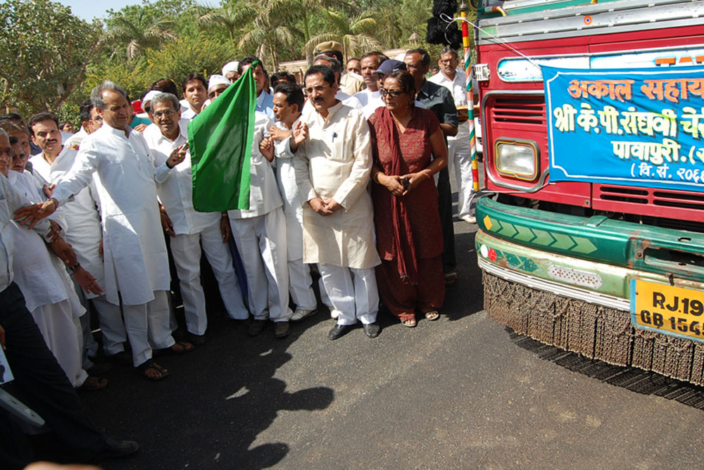 In 2010, KP Sanghvi responded to severe drought conditions in Rajasthan with urgent support for both people and animals facing extreme hardship. Contributing ₹51 lakhs to the State Disaster Relief Fund and distributing essential food and agricultural supplies to various rural parts of Rajasthan. This initiative was flagged off by Shri Ashok Gehlot, Chief Minister of Rajasthan, bringing relief to communities when they needed it most.